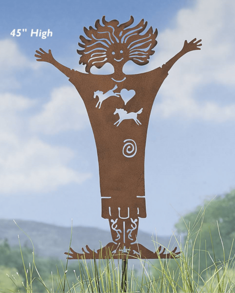 Please help me welcome my newest friend, Screaming Spirit Woman. An artist with Back in the Saddle made her. There she was, hanging in their catalog; but, she was destined to come live to my gardens.