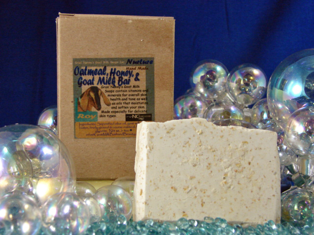 Oatmeal, Honey, & Goat Milk Soap Bar: Oatmeal gently exfoliates your skin while honey, a humectant, attracts moisture to your skin. Combined with goat milk and olive oil, this milk bar is calming and soothing.